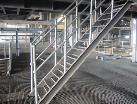 檢修平臺(tái)鋼格柵板是用扁鋼按照一定的間距和橫桿進(jìn)行交叉排列,并且焊接成中間帶有方形格子的一種鋼鐵制品,檢修平臺(tái)鋼格柵板主要用來(lái)做鋼結(jié)構(gòu)平臺(tái)板,鋼梯的踏步板等.檢修平臺(tái)鋼格柵板一般采用碳鋼制作,外表熱鍍鋅,可以起到防止氧化的作用。檢修平臺(tái)鋼格柵板也可以采用不銹鋼制作。檢修平臺(tái)鋼格柵板具有通風(fēng),采光,散熱,防滑,防爆等性能。檢修平臺(tái)鋼格柵板應(yīng)用范圍極其廣泛···