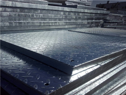 復合鋼格板是由有一定橫跨承載能力的鋼格板及密封表面的花紋板構成的一種產品。復合鋼格板經熱浸鋅處理后,因熱力會產生翹曲變形,尤其是選用較大型號的鋼格板,校平比較困難,請注意選型。復合鋼格板常用系列3鋼格板作底板,也可采用系列1或系列2鋼格板;花紋鋼格板常用3mm厚板,也可采用4mm,5mm、6mm的板。在復合鋼格板的正面或底面捍接鋼網制成復網板,可防小件掉落,在糧倉、餐廳、倉庫使用復網板,可防止老鼠等小動物進入。